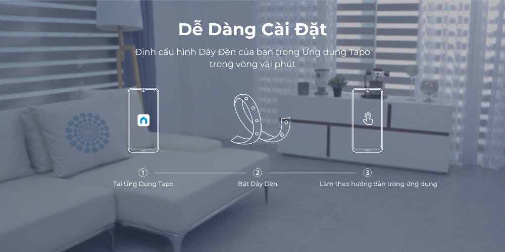 Dễ Dàng Cài Đặt - đi kèm với LDải Đèn có Keo 3M ở những vị trí mong muốn, kết nối nó với Wi-Fi và định cấu hình thông qua Ứng dụng.