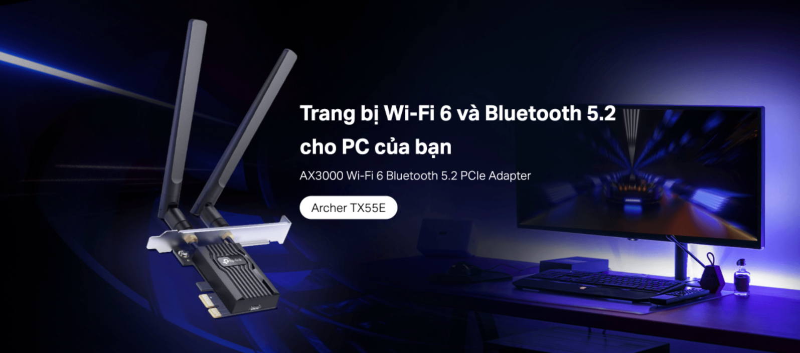 Card WiFi 6 TP-Link TX55E Băng Thông Ax3000, Bluetooth 5.2 Dành cho PC
