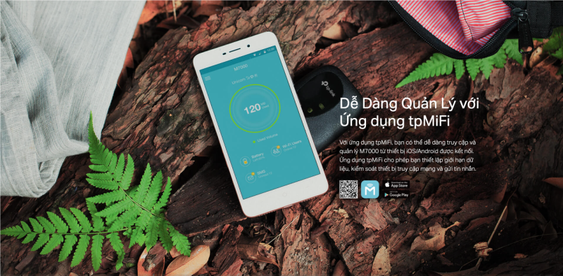👉 Dễ Dàng Quản Lý với Ứng dụng tpMiFi: Với ứng dụng tpMiFi, bạn có thể dễ dàng truy cập và quản lý M7000 từ thiết bị iOS/Android được kết nối. Ứng dụng tpMiFi cho phép bạn thiết lập giới hạn dữ liệu, kiểm soát thiết bị truy cập mạng và gửi tin nhắn.