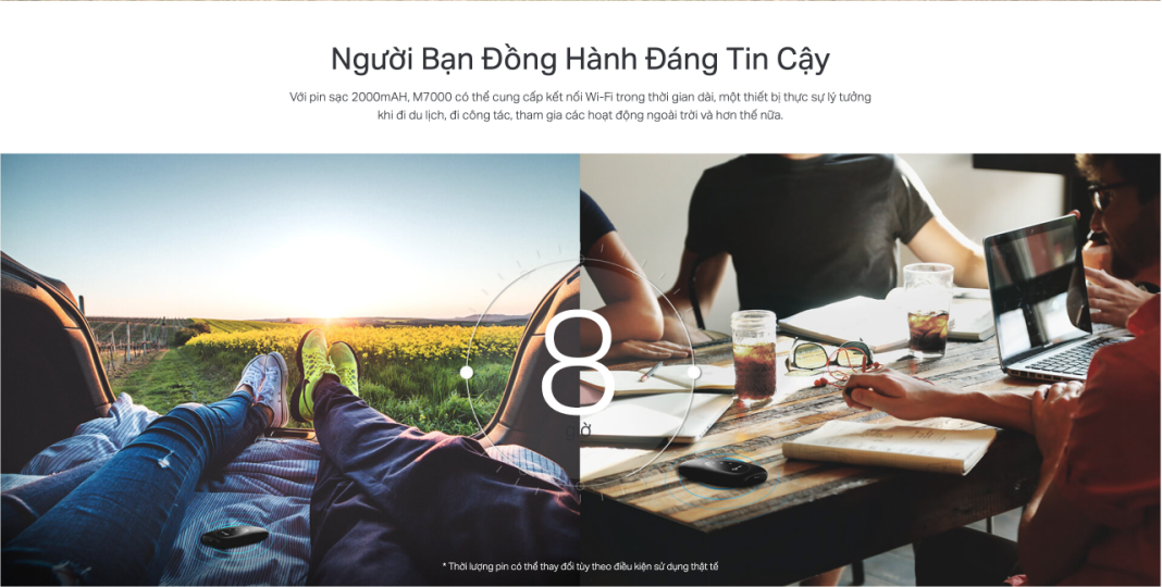 👉 Người Bạn Đồng Hành Đáng Tin Cậy: Với pin sạc 2000mAH, M7000 có thể cung cấp kết nối Wi-Fi trong thời gian dài, một thiết bị thực sự lý tưởng khi đi du lịch, đi công tác, tham gia các hoạt động ngoài trời và hơn thế nữa.