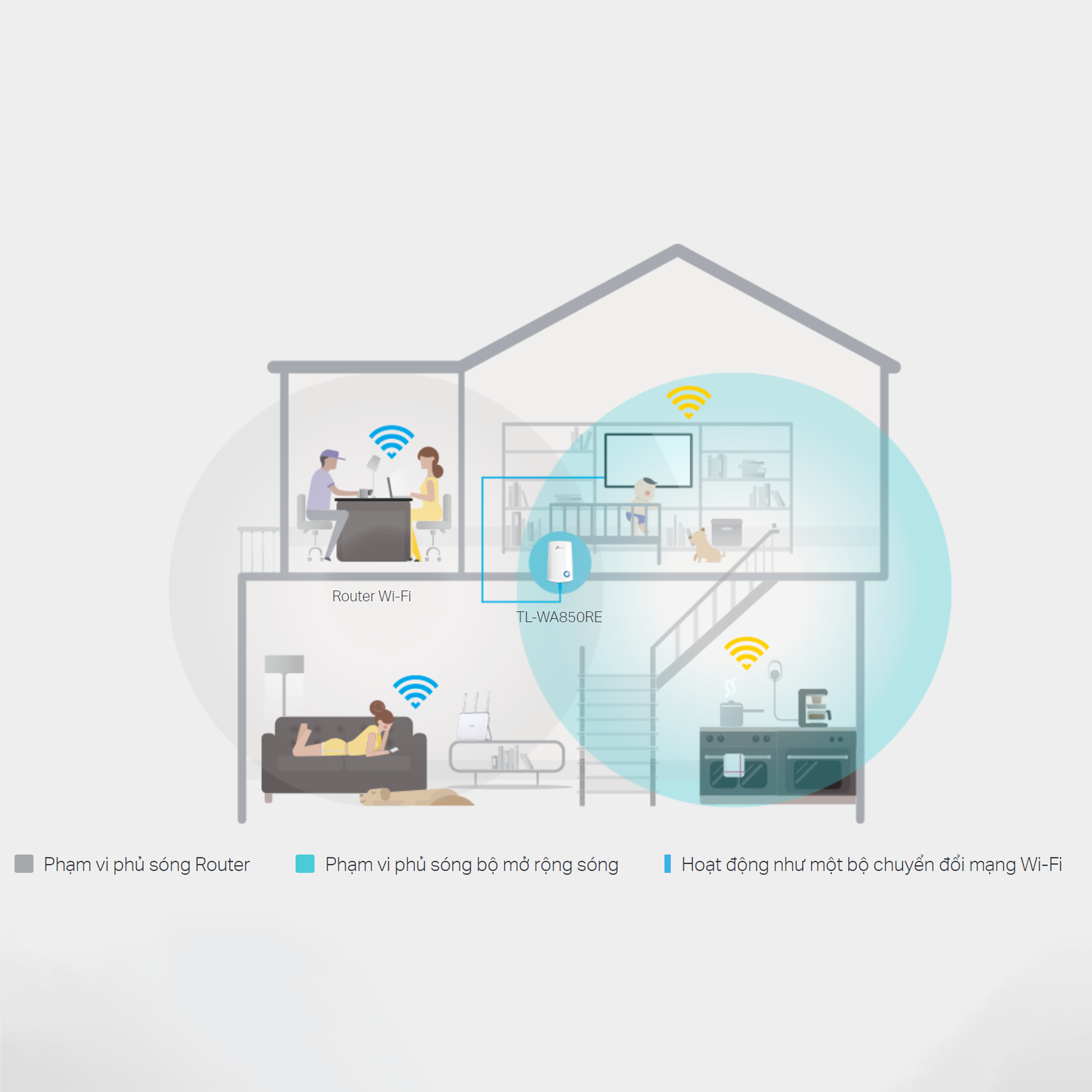 - Chế độ mở rộng sóng tăng cường tín hiệu Wi-Fi đến các điểm không thể hoặc khó đi dây trước đây một cách hoàn hảo