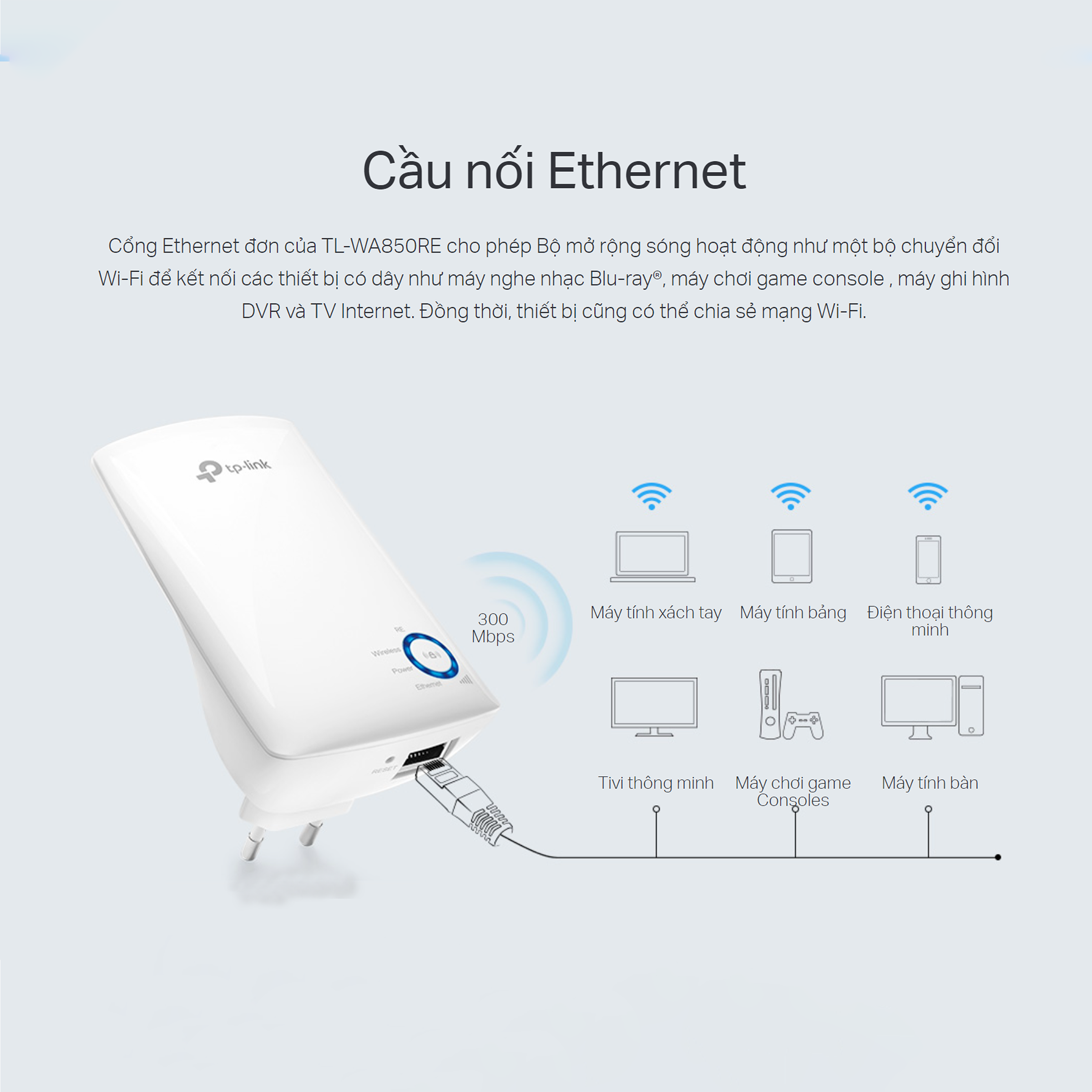 Mở rộng Wi-Fi dễ dàng vị trí linh hoạt tốc độ siêu nhanh 300Mbps hãy chọn ngay bộ mở rộng sóng TL-WA850RE