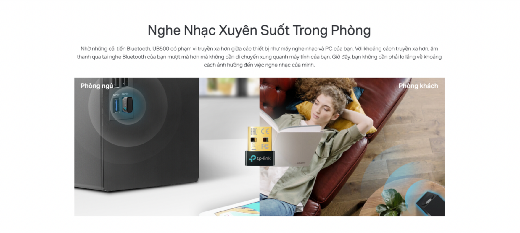 👉 Nghe Nhạc Xuyên Suốt Trong Phòng: UB500 Nhờ những cải tiến Bluetooth, UB500 có phạm vi truyền xa hơn giữa các thiết bị như máy nghe nhạc và PC của bạn. Với khoảng cách truyền xa hơn, âm thanh qua tai nghe Bluetooth của bạn mượt mà hơn mà không cần di chuyển xung quanh máy tính của bạn. Giờ đây, bạn không cần phải lo lắng về khoảng cách ảnh hưởng đến việc nghe nhạc của mình.