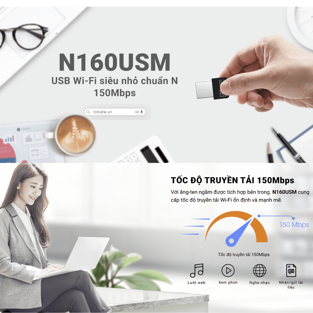 - Tốc độ truyền tải 150Mbps: Hỗ trợ truyền dữ liệu nhanh chóng, giúp lướt web, xem video và tải file mượt mà.