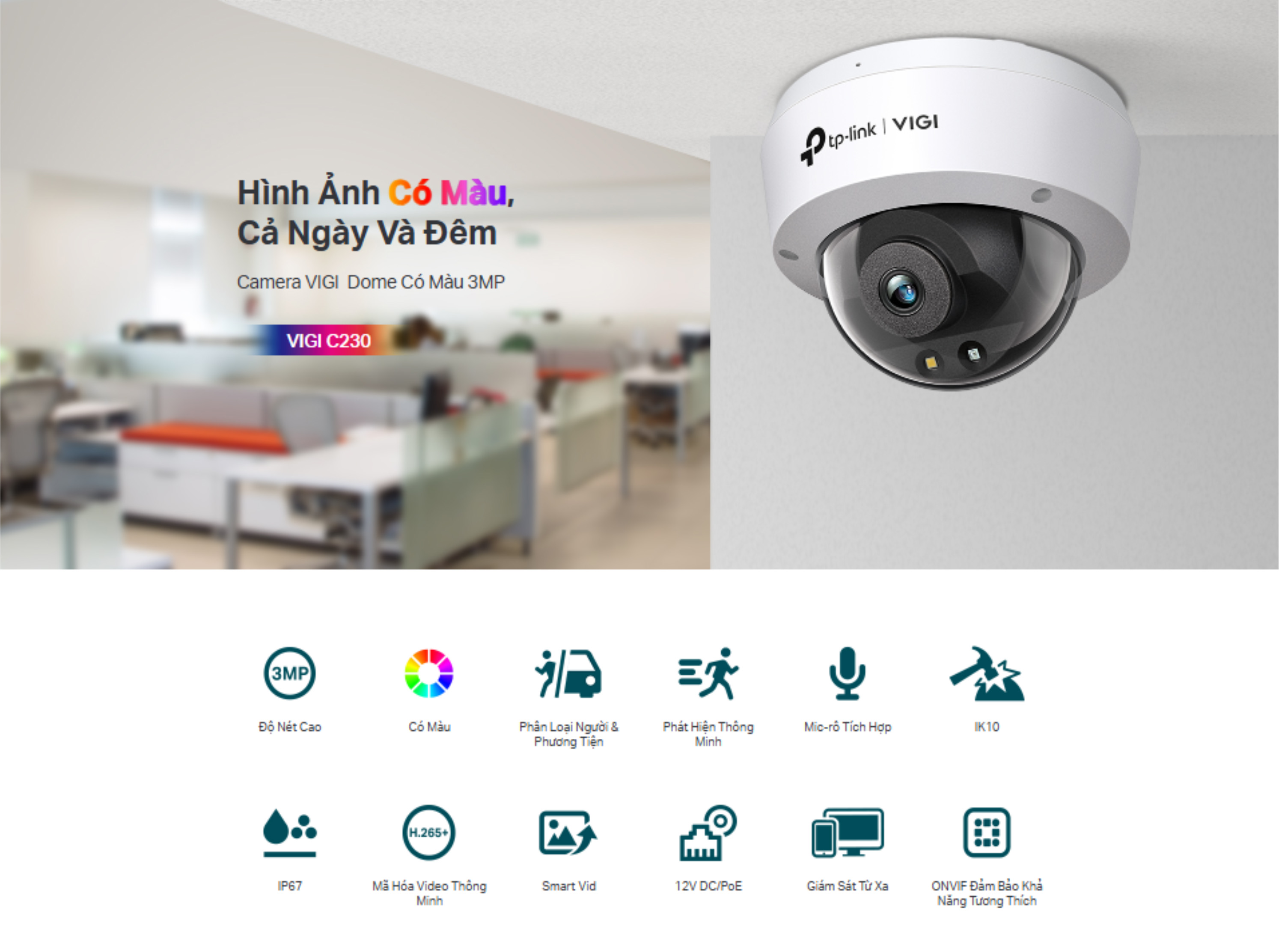 ☀️ VIGI C230 Camera POE Dome Màu Ban Đêm 3MP