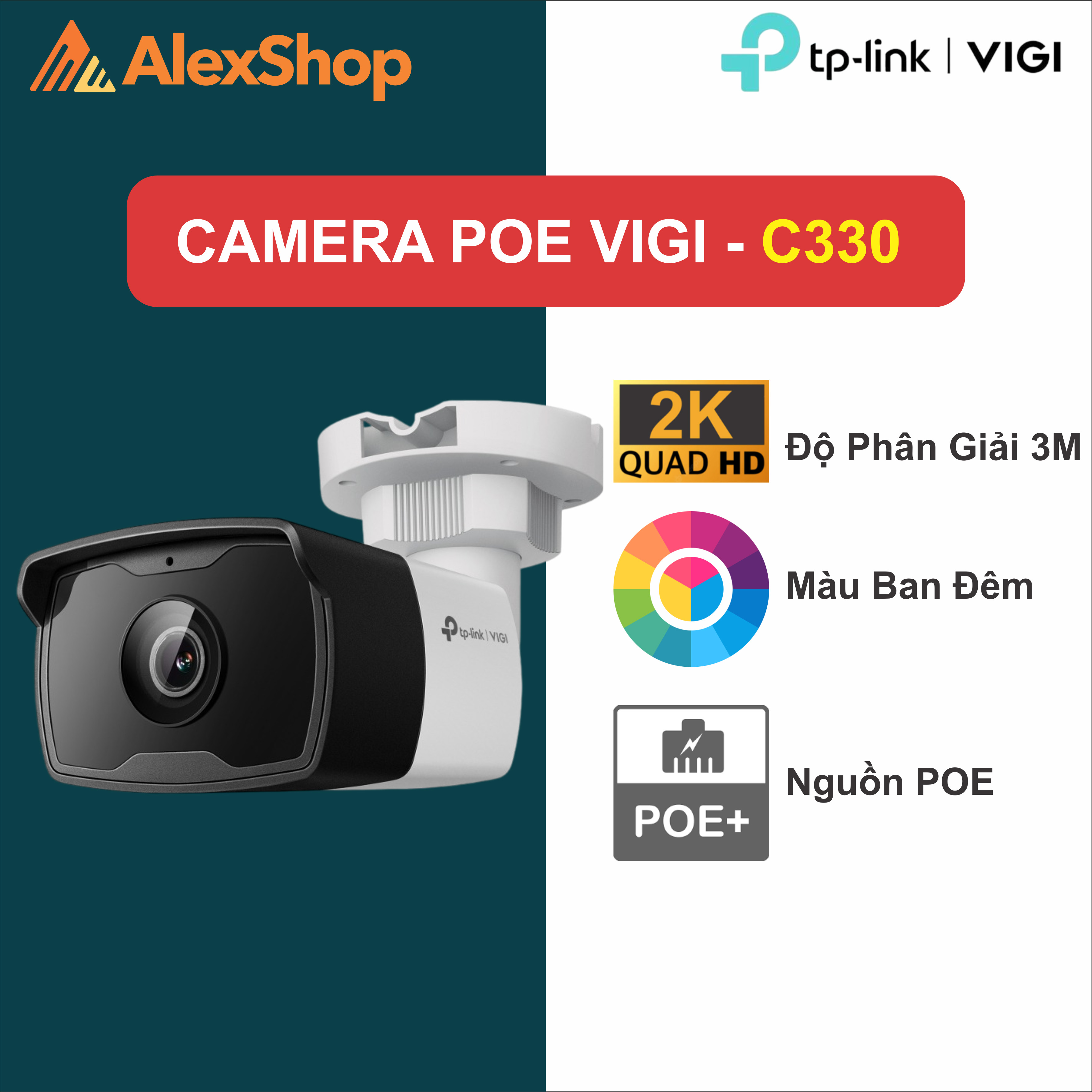 [3M] VIGI C330 (6mm) | Camera Ngoài Trời POE TP-Link, Màu Ban Đêm, Phân Giải 3M, IP67