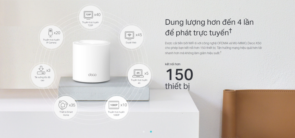 Kết nối hơn 150 thiết bị -Dung lượng hơn đến 4 lần để phát trực tuyến