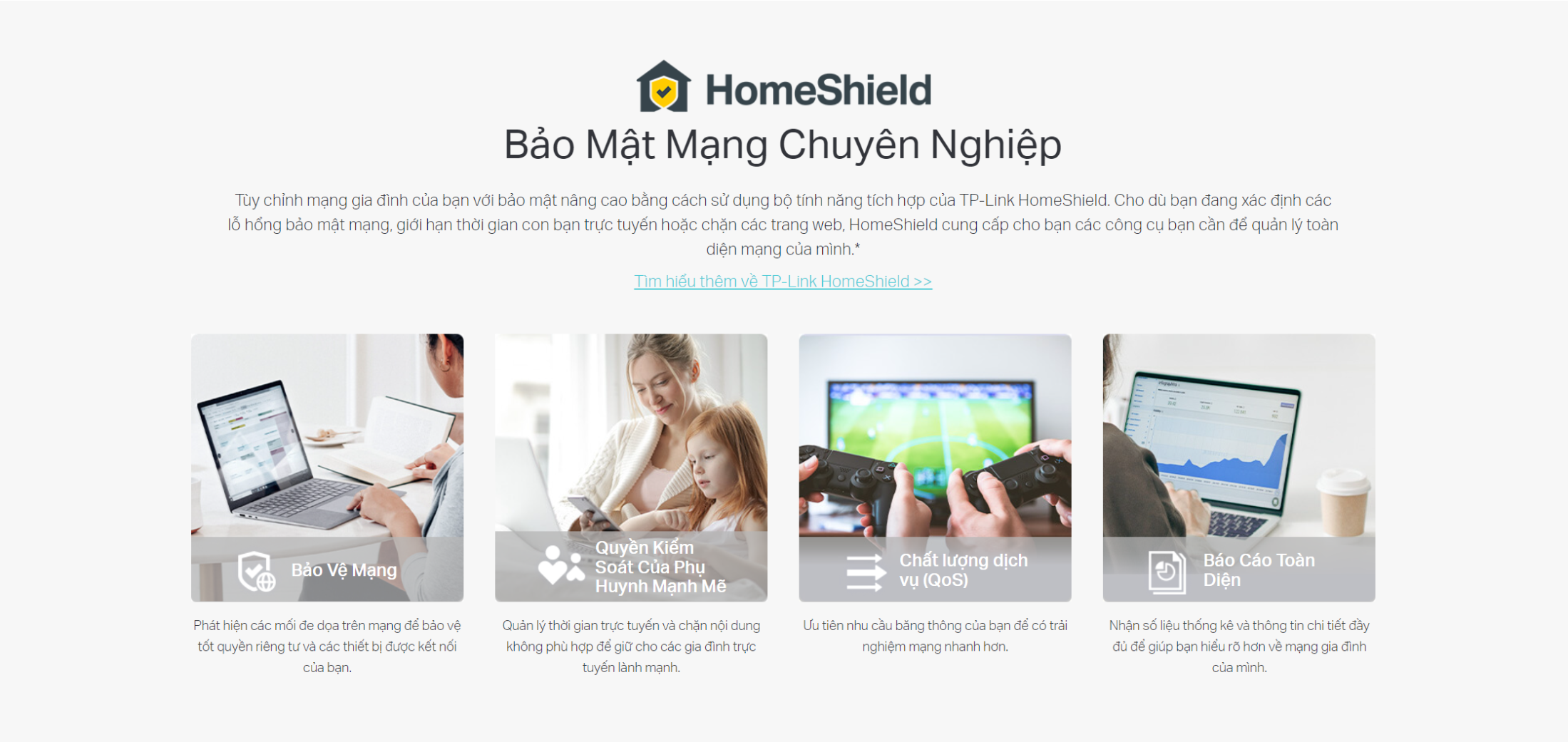 Tùy chỉnh mạng gia đình của bạn với bảo mật nâng cao bằng cách sử dụng bộ tính năng tích hợp của TP-Link HomeShield. Cho dù bạn đang xác định các lỗ hổng bảo mật mạng, giới hạn thời gian con bạn trực tuyến hoặc chặn các trang web, HomeShield cung cấp cho bạn các công cụ bạn cần để quản lý toàn diện mạng của mình.